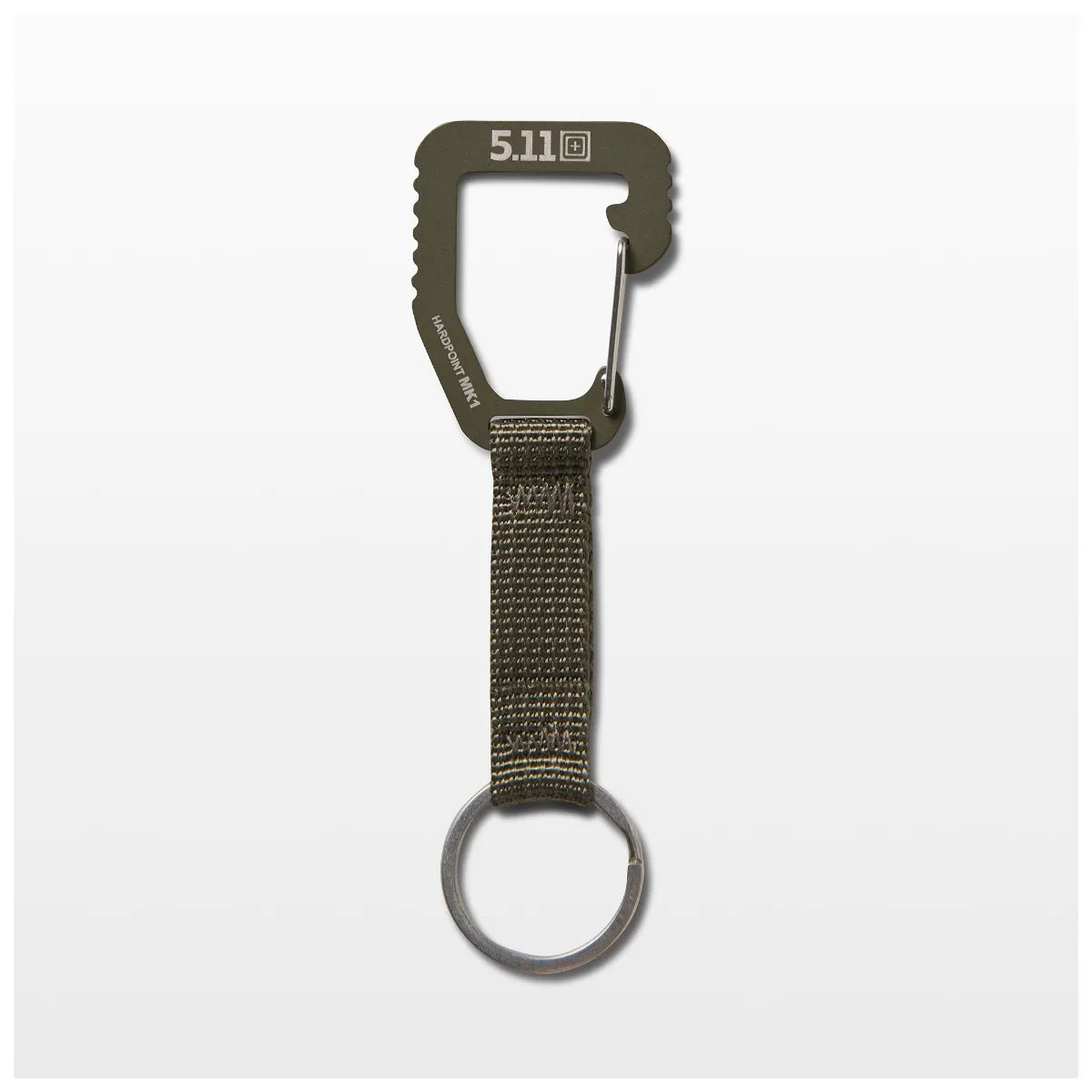 The Hardpoint M1K is the smallest of the Hardpoint series. A stainless steel-bodied carabiner with a wire gate, it is sized to fit on pant loops and similar attachment points. There’s also a webbing strap with a 1'' (25mm) strap pass-through and a split metal ring for keys or other small EDC items. It’s a handy little piece of hardware and good to have on hand.