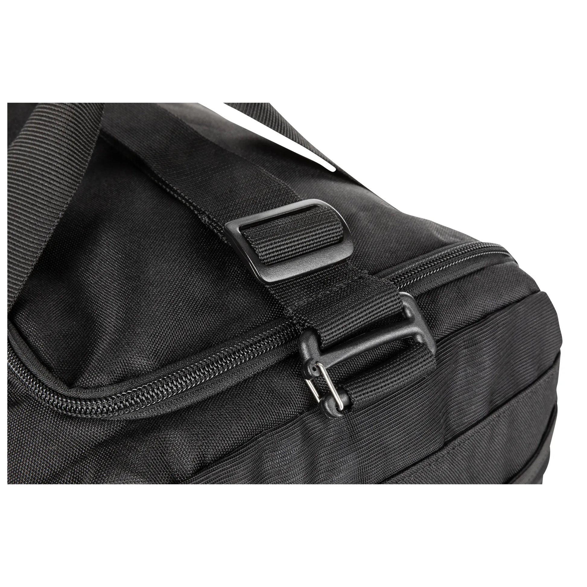 The PT-R® Daily Grind Duffel outworks ordinary duffel bags. The 32-liter volume will easily carry everything you need for a hardcore training session or an overnight trip. Dual padded carry handles and a removable shoulder strap that's fully adjustable help haul the load. The large top opening allows easy access to gear and clothing. Constructed from rugged 600D polyester with TPE backing to take daily abuse, bottom webbing with TPU strips add strength and grip. A breathable mesh side pocket stows essentials. Attach your favorite morale patch to the MOLLE-compatible loop panel and get some.