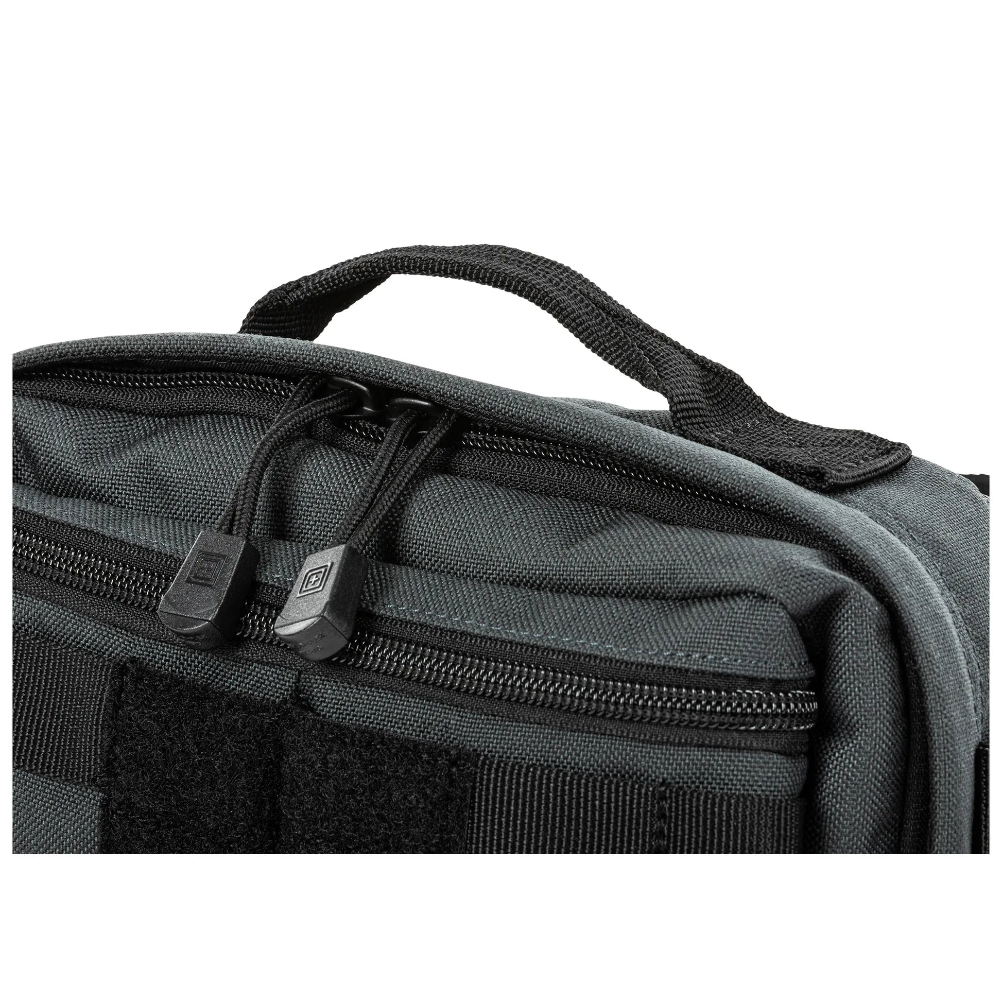 Carry and conceal everyday essentials with the 5.11 RUSH® MOAB™ 3 4L bag. The MOAB 3 integrates with other RUSH® bags using the 5.11® Tier System, and works independently as a crossbody or waist pack. It includes a 1.5" waist strap with a quick-release buckle with four connection points ensuring a comfortable fit in either configuration. External web MOLLE on front and side panels and elastic bands on the bottom panel allow for customization and accessory attachment. Inside the zippered main compartment, we added CCW compatibility with an internal TacTec® loop panel and trigger guard loops in addition to elastic bands for extra org. A top grab handle maximizes carrying options while an external front zippered pocket holds those extras. Whether you need an everyday carrying solution or a modular add-on, the RUSH® MOAB™ 3 is the right-sized option.