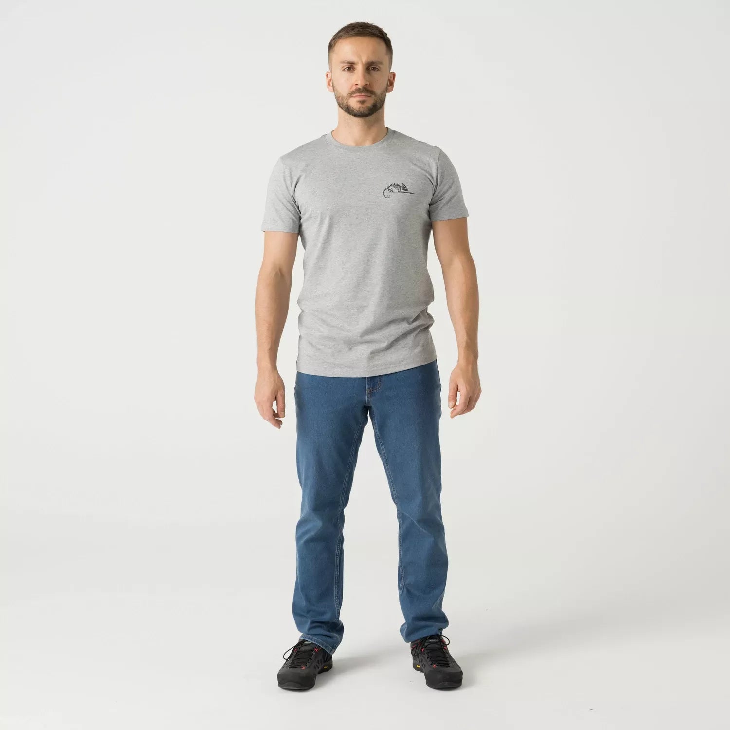 A classic cotton T-shirt featuring the Helikon-Tex logo. The distinctive shape of T-shirts evolved in the early 20th century from the previous underwear (known as a union suit). After World War II, cotton T-shirts in the shape of the letter T became very popular, partly thanks to Marlon Brando and James Dean, who wore them on screen.